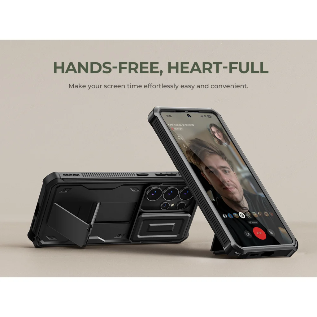 A Samsung Galaxy S26 Ultra Dexnor tok kihajtható állvánnyal, fekete 360 ütésálló – a bizalomra méltó partner, amely minden felfedezést lehetővé tesz, határtalan kalandokat ígérve, korlátok nélkül.