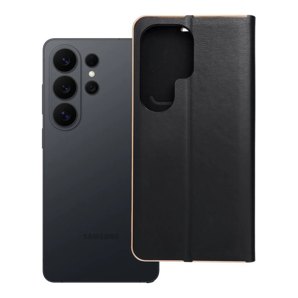 Elegáns tok fémkerettel a telefon fokozott védelméért. A vonzó textúra és a kellemes tapintású anyag stílusos tokot eredményez, amely kiemeli a készülék modern kialakítását. A puha velúr anyag belül és a tartórészben mindkét oldalról védi a készüléket a sérülésektől és karcolásoktól. A fogantyú rugalmas szilikonból készült és kivágásokat tartalmaz. Az alumínium keret az éleken erősíti a tokot, és még inkább védi a készüléket. A fém és az eredeti anyag kombinálása egyedi és modern kompozíciót hoz létre, amelynek köszönhetően a készülék stílusos és elegáns megjelenést kap. A tok tartalmaz egy kis zsebet a kéznél lévő dokumentumok vagy bankjegyek számára. A tok vízszintes alappal rendelkezik filmek vagy fényképek nézéséhez. Az erős mágnes biztosítja a könnyű nyitást és zárást, és megakadályozza a véletlen kinyílást.