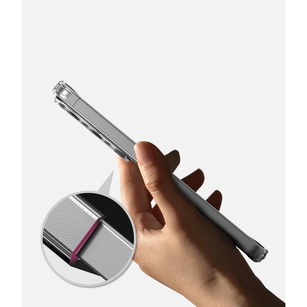 - Shock Absorption technológia: A sarkokban található speciális légpárnás kialakítás (Air Cushion) hatékonyan nyeli el az ütéseket, minimalizálva a sérülések kockázatát a telefon leginkább veszélyeztetett pontjain.