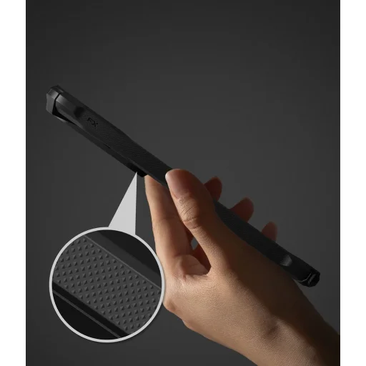 - Fokozott tapadás: A tok oldalán kialakított texturált felület kiváló tapadást biztosít, minimalizálva a véletlen kicsúszás kockázatát és kényelmes fogást biztosítva.