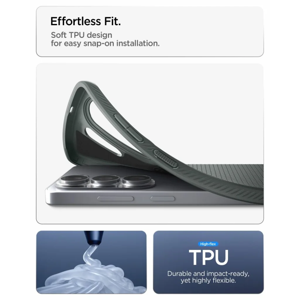 A Samsung Galaxy S26 Ultra Spigen Liquid Air Mag MagSafe tok Zöld színben a minimalista esztétikát ötvözi a kompromisszumok nélküli védelemmel, kifejezetten a Samsung Galaxy S26 Ultra készülékhez tervezve. Ez a karcsú, mégis robusztus tok a modern design és a fejlett funkcionalitás tökéletes egyensúlyát kínálja, tükrözve a "The Art of Fluidity" filozófiát.