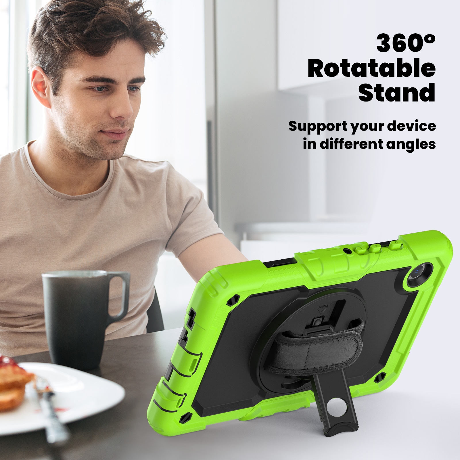 Védje meg Samsung Galaxy Tab A9 Plus (X210/X215/X216) készülékét a mindennapi kihívásokkal szemben ezzel a robusztus, sárga-zöld/fekete színű PC tablet tokkal, amely ütésálló kialakításával és praktikus vállpántjával tökéletes választás. Ez a tok nem csupán védelmet nyújt, hanem kényelmes és sokoldalú használatot biztosít minden helyzetben, otthon, munkahelyen vagy útközben egyaránt.