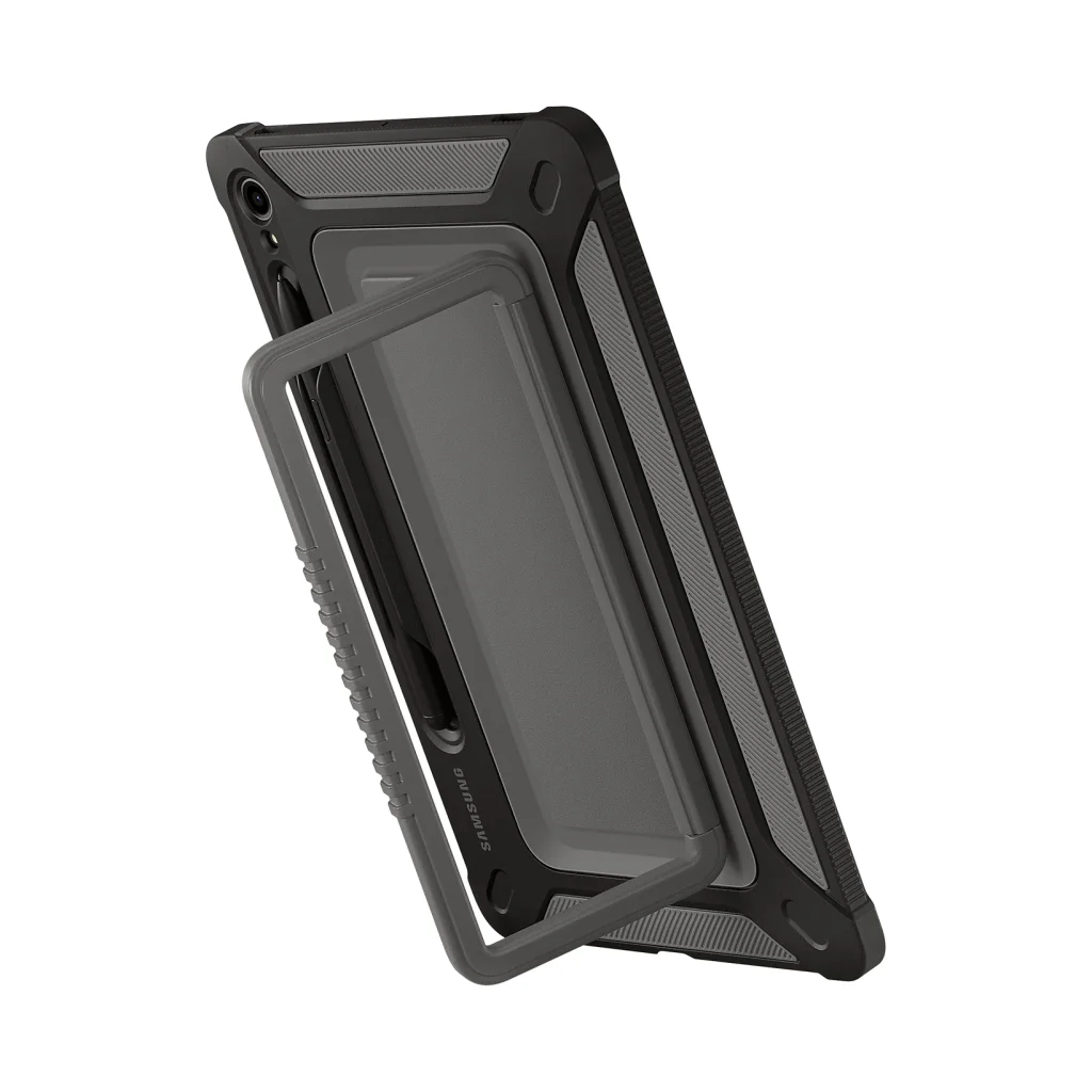 Ez a gyári kültéri tok tökéletesen illeszkedik a Samsung Galaxy Tab S9 vonalaihoz, maximális védelmet nyújtva anélkül, hogy túlzottan vastaggá vagy nehézzé tenné a készüléket. A modern, fekete-szürke színkombináció elegáns és sportos megjelenést kölcsönöz a tabletnek, kiemelve annak prémium minőségét. A pontos kivágások biztosítják az összes port, gomb és a kamera akadálytalan elérését, így a funkcionalitás sem szenved csorbát.