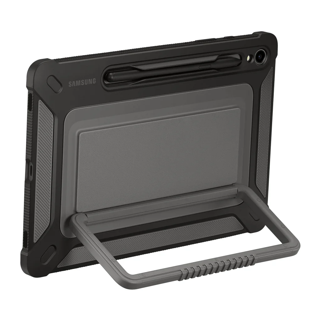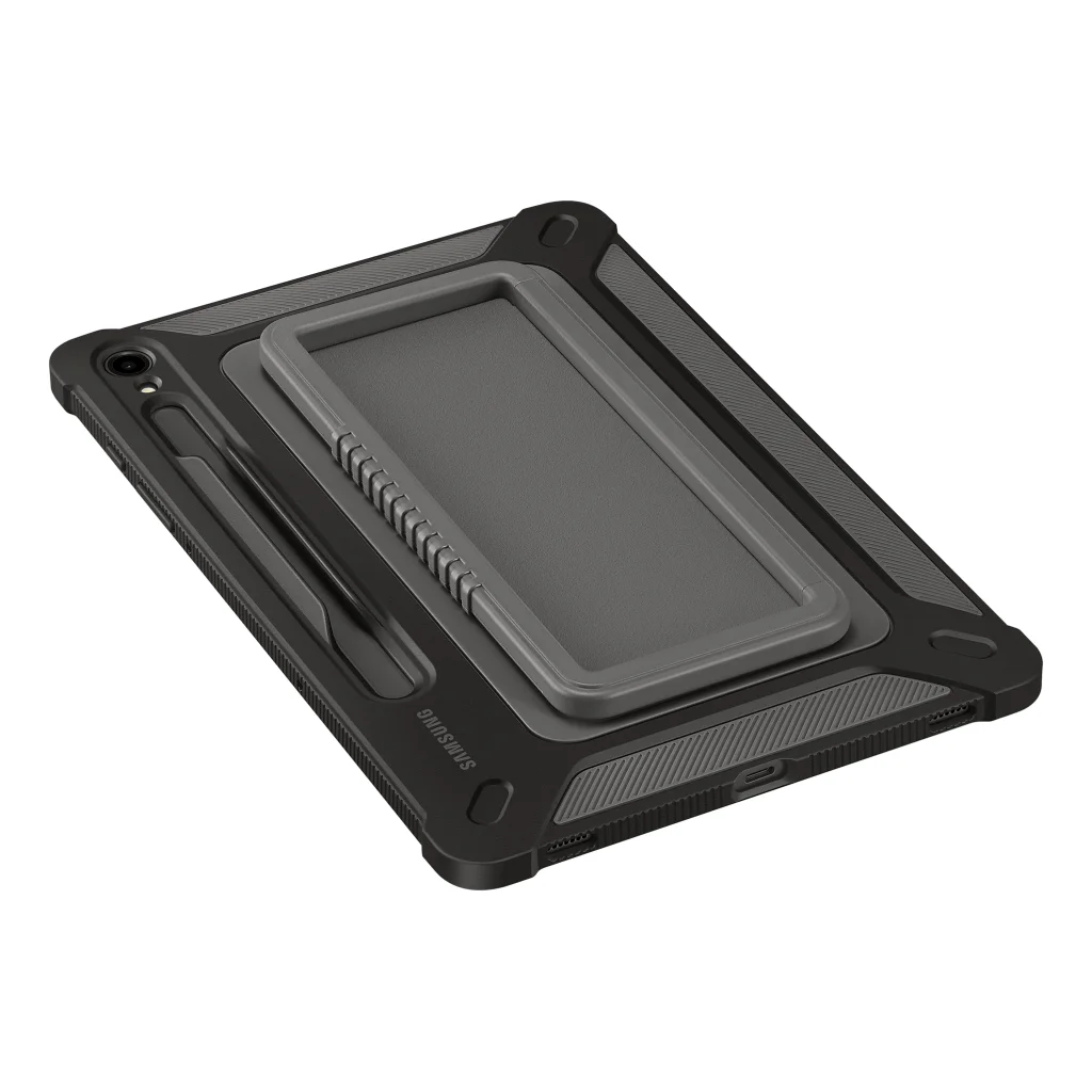 A Samsung Galaxy Tab S9 gyári kültéri tok fekete színben (EF-RX710CBEGWW) a tökéletes választás azok számára, akik maximális védelmet és funkcionalitást keresnek tabletjük számára, különösen a szabadban. Ez a strapabíró tok nem csupán megvédi készülékét a mindennapi kalandok során, hanem kényelmes használatot biztosít a beépített állvány és az S Pen tartó révén.