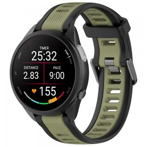 A kiváló minőségű szilikonból készült szíj rendkívül kényelmes viseletet biztosít egész nap, még intenzív edzés során is. Anyaga bőrbarát, rugalmas, és ellenáll az izzadtságnak, így ideális választás aktív életmódot élők számára. A belső khaki és külső fekete színkombináció, valamint a bordázott, texturált felület modern és dinamikus megjelenést kölcsönöz, emellett elősegíti a bőr szellőzését.