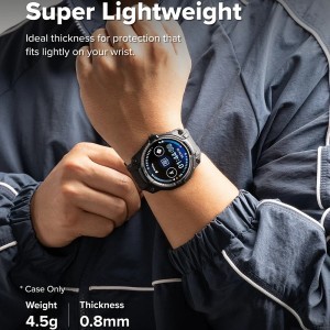A tokot úgy tervezték, hogy minimális vastagsággal és súllyal járuljon hozzá az órához, így szinte észrevétlenül illeszkedik a csuklójára. Mindössze 4.5 gramm súlyú és 0.8 mm vastagságú (csak a tok), ez a védelem nem nehezíti el az órát, és kényelmes viseletet biztosít egész nap.