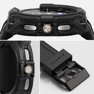 - Precíz kivágások: A "Full Access Design" gondoskodik arról, hogy az óra minden funkciója, gombja és a töltőportja is könnyen hozzáférhető maradjon a tok viselése közben is. Az "Open-Screen Cutout" dizájn védi a kijelzőt, miközben biztosítja a forgatható lünetta zavartalan használatát (amennyiben az óra rendelkezik ilyennel).