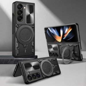 - 360°-ban forgatható gyűrűtartó/állvány: A tok hátoldalán található, robusztus gyűrűtartó 360 fokban elforgatható, így ergonomikus és biztonságos fogást biztosít a telefon számára. Emellett stabil állványként is funkcionál, lehetővé téve a készülék kényelmes elhelyezését filmnézéshez, videóhívásokhoz vagy böngészéshez, rugalmas betekintési szögekkel, anélkül, hogy a könyökét terhelné.
