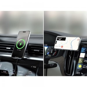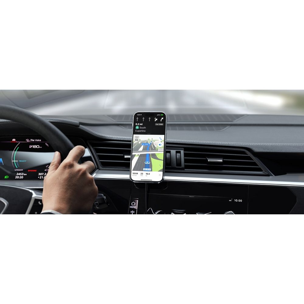 - Erős mágneses rögzítés (MagSafe kompatibilis): Biztonságosan a helyén tartja telefonját még rázós úton is, garantálva a stabil kapcsolatot és a tökéletes igazítást a töltéshez.