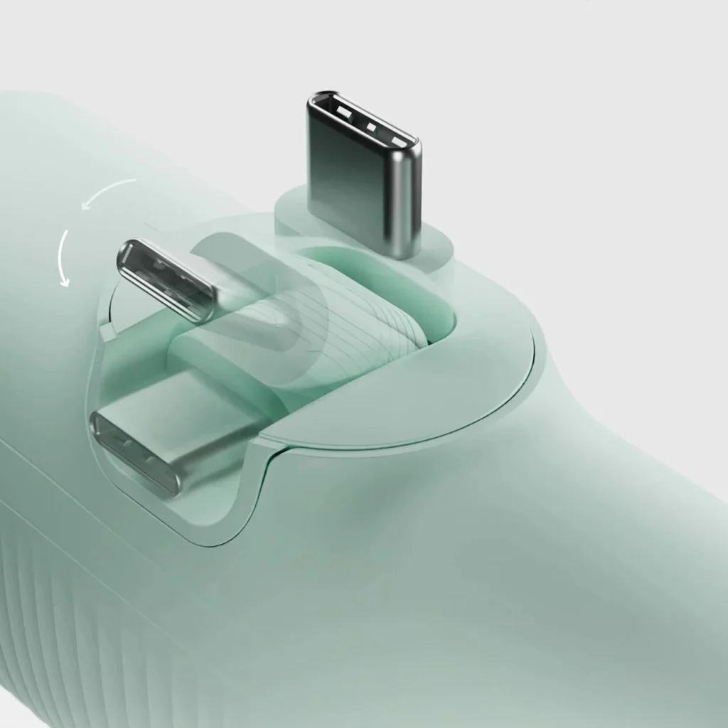 - USB-C port a nagyobb rugalmasság érdekében: Csatlakoztathatod a saját USB-C kábeledet az eszköz vagy a powerbank töltéséhez.