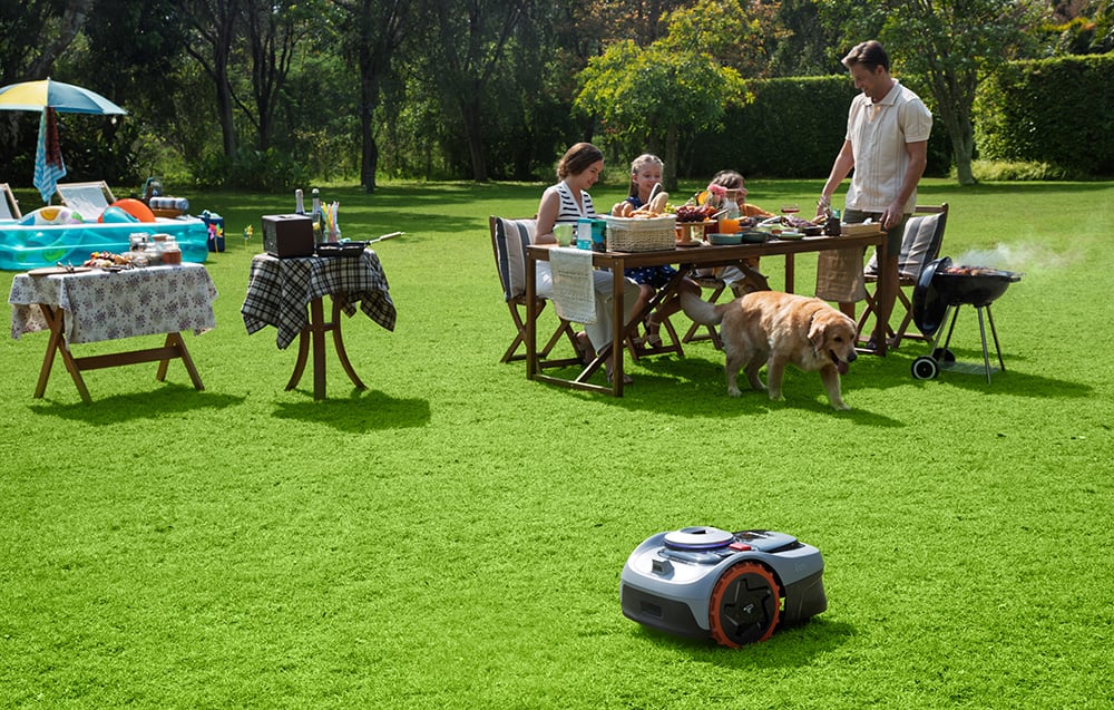 A robot IP66-os besorolású házzal rendelkezik, ami teljes ellenállást jelent a porral és a heves esőzésekkel szemben. Az 58 dB(A) halk működésnek köszönhetően még kora reggel is képes kaszálni anélkül, hogy zavarná a háztartás tagjait vagy a szomszédokat. Önállóan alkalmazkodik az időjárási körülményekhez, szükség esetén leállítja a munkát.