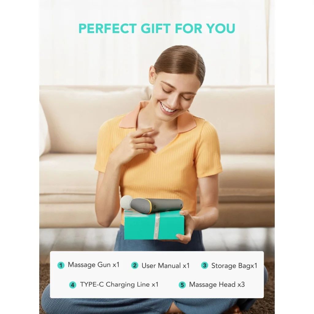 A csomag tartalma: - 1x SKG F5-EN masszírozó - 3x masszázsfej - 1x USB-C tápkábel - 1x felhasználói kézikönyv