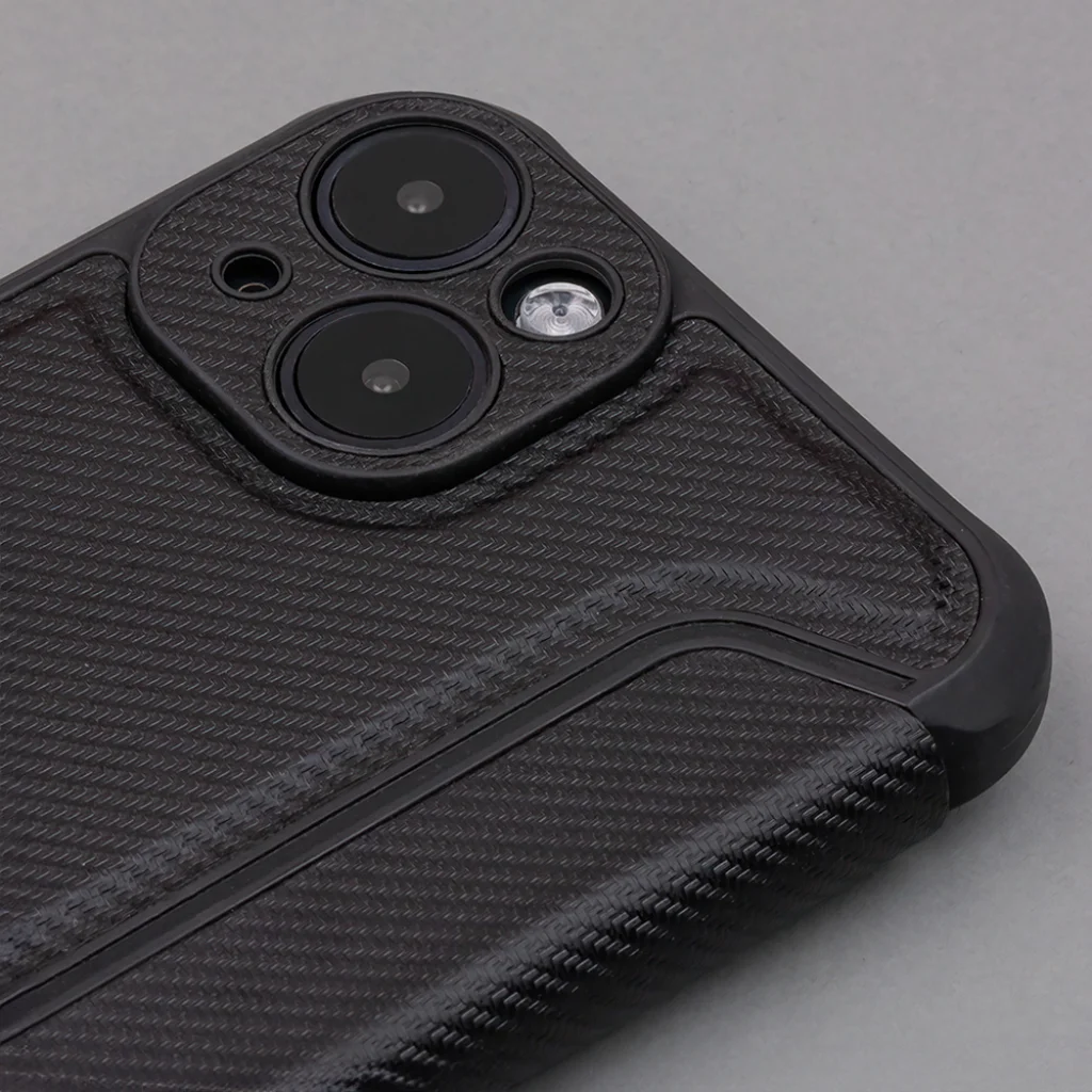 A tok belsejében van egy kártyák számára kialakított zseb, amely megszünteti a pénztárca hordozásának szükségességét. A stílusos design karbon szálat imitál, amely modern és elegáns megjelenést kölcsönöz.