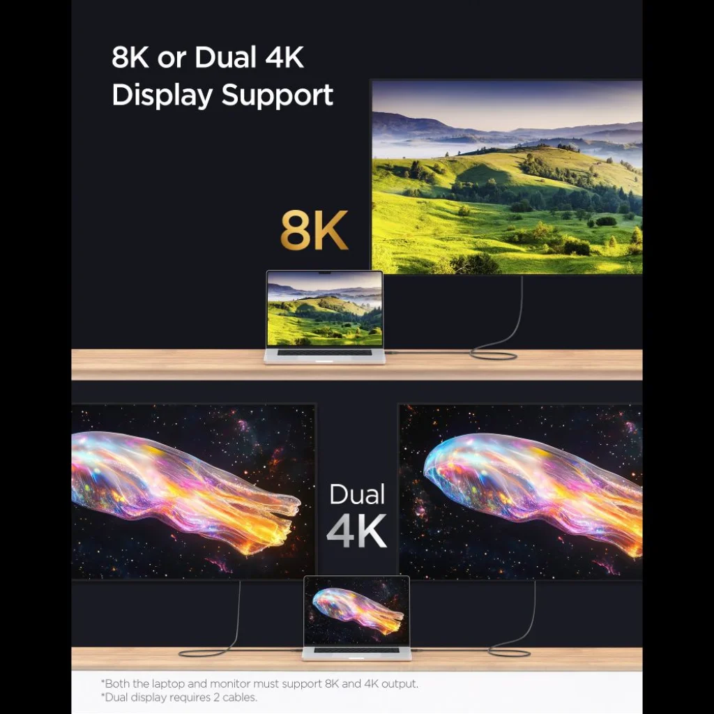 *Megjegyzés: Kettős 4K kijelzőhöz két kábel szükséges, és mind a laptopnak, mind a monitornak támogatnia kell az adott felbontást.
