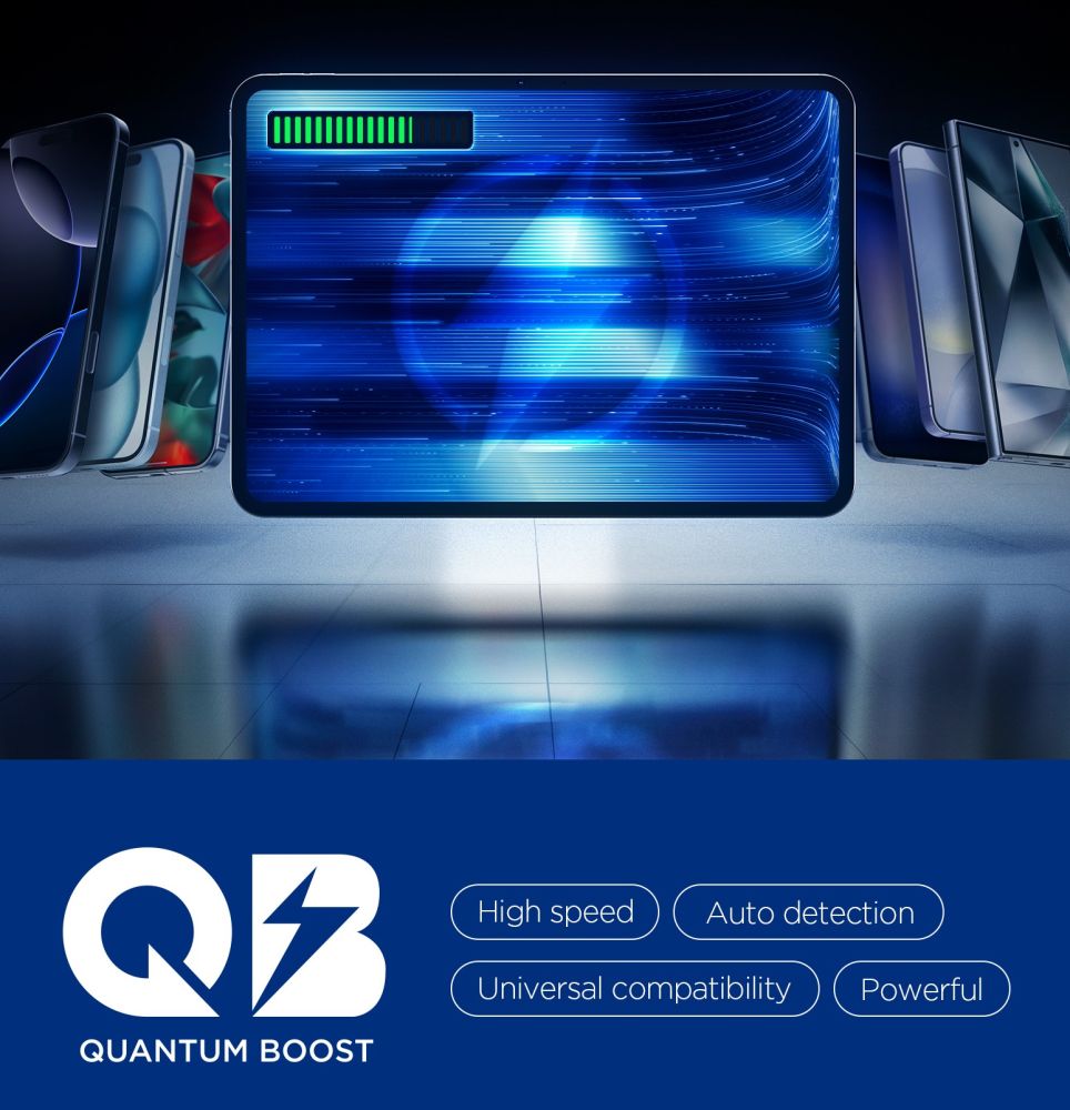 A beépített Quantum Boost technológia automatikusan felismeri és az adott eszközhöz igazítja a töltési teljesítményt, maximalizálva annak hatékonyságát és sebességét. Ez a technológia a következőket biztosítja: