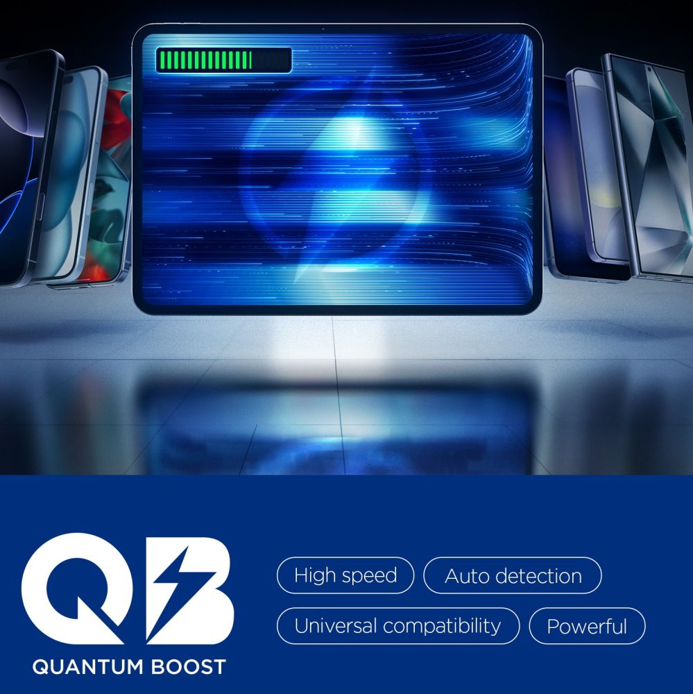 - Quantum Boost technológia: Intelligensen felismeri a csatlakoztatott eszközöket és automatikusan az optimális teljesítményt állítja be mindegyikhez, biztosítva a nagy sebességet, automatikus felismerést és univerzális kompatibilitást.