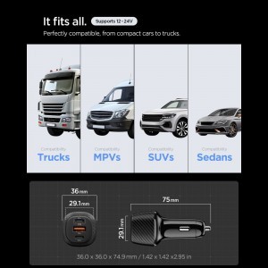 - Univerzális jármű kompatibilitás: Tökéletesen illeszkedik a legtöbb szivargyújtó aljzatba, és kompatibilis minden típusú járművel (teherautók, furgonok, SUV-ok, szedánok), melyek 12-24V-os rendszert használnak.