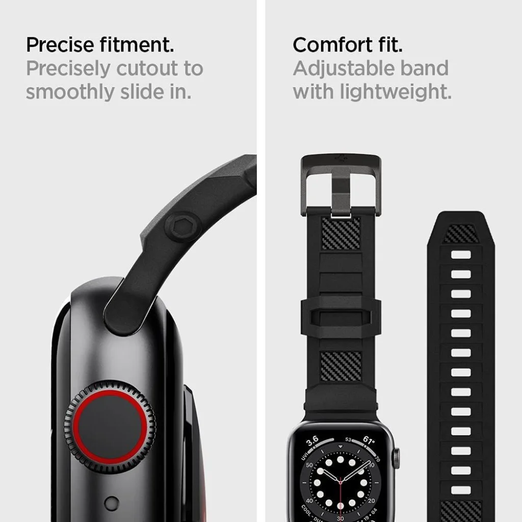 Válassza a Spigen Rugged Apple Watch szíjat, és biztosítson készülékének kiemelkedő védelmet egy sportos, mégis elegáns megjelenéssel!