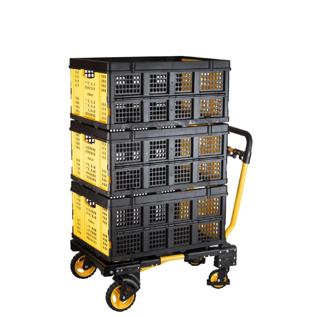 A STANLEY Molnárkocsi/ kiskocsi összecsukható kivitelben készült, így kis helyen, bútor mögött vagy akár ágy alatt tárolható. Két módon használható, rendkívül egyszerűen, pillanatok alatt 4 kerekű kiskocsivá vagy 2 kerekű molnárkocsivá nyithatja ki. Teherbírása 137/ 70 kg.
