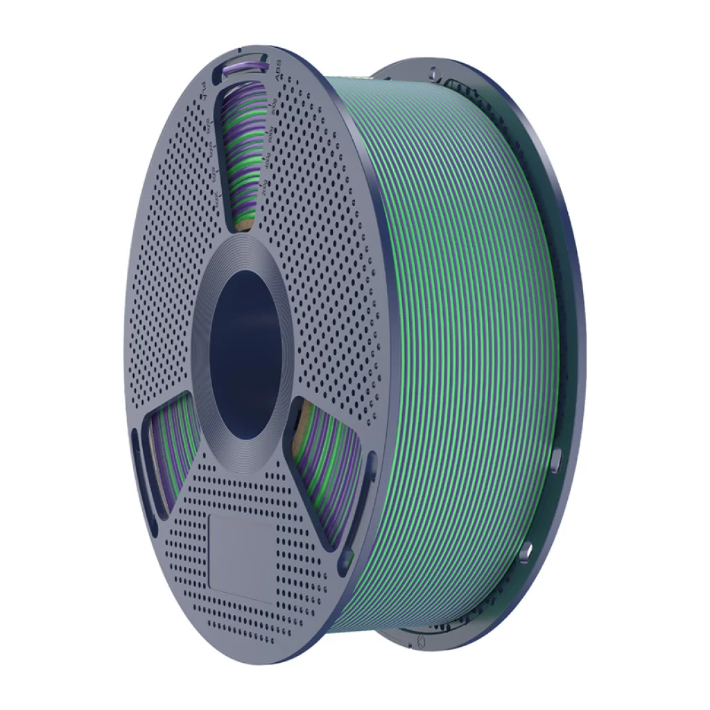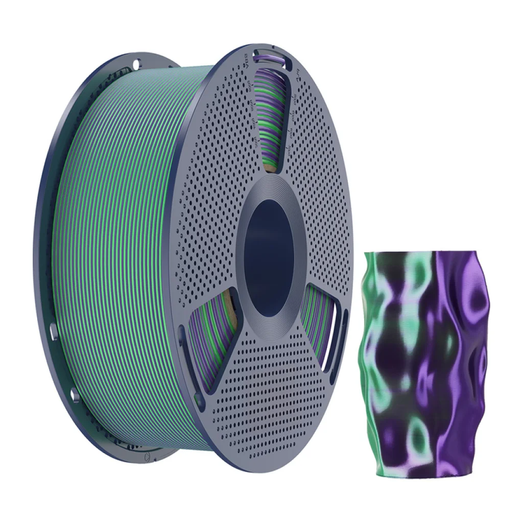 A zöld-lila színű Sunlu PLA+ Silk két színű filament azok számára készült, akik egyedi, látványosabb megjelenést szeretnének adni 3D nyomtatásaiknak. A Multi Color technológiának köszönhetően egyetlen filamenttel is többszínű hatás érhető el, a kész modellek megjelenése pedig a fény beesési szögétől és a nézőponttól függően változik. Kiváló választás dekorációs projektekhez, figurákhoz, kütyükhöz, prototípusokhoz és minden olyan felhasználáshoz, ahol a pontosság és az eredeti vizuális hatás egyaránt fontos.