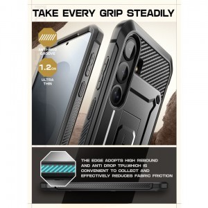 A tok tökéletesen illeszkedik a Galaxy S25 FE készülékhez, nem korlátozza a vezeték nélküli töltés lehetőségét, és minden port, gomb és funkció akadálymentesen hozzáférhető. A gombvédők és a zárható portfedelek megakadályozzák a por, szennyeződés és nedvesség bejutását a készülékbe. Az enyhén megemelt keret a kamera és a képernyő körül extra védelmet nyújt a karcolások ellen, megemelve a telefont a sík felületekről. Az oldalain található csúszásgátló barázdák és a speciális, magas rugalmasságú TPU élkialakítás stabil fogást biztosít, miközben csökkenti az anyagok súrlódását.