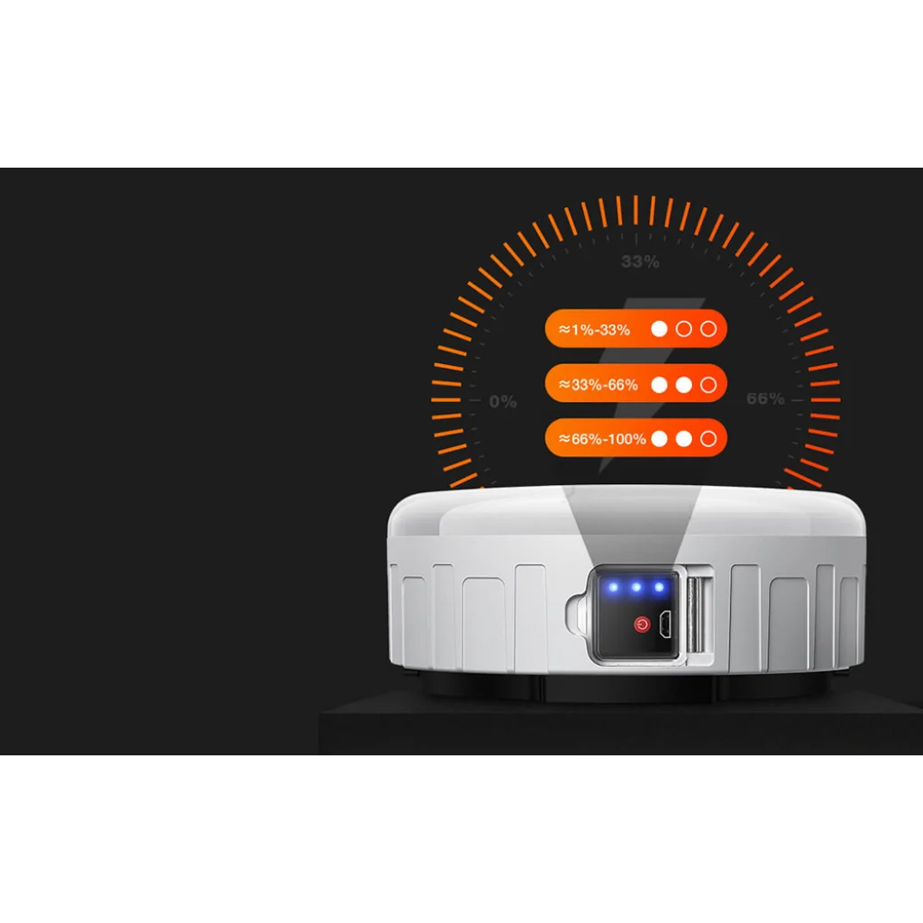 A kompakt Superfire T25 kemping lámpa tökéletes bármilyen kempingezéshez és egyéb célokra is. Használhatja áramkimaradás, autójavítás esetén is. Könnyedén felakaszthatja a sátorában a hozzá tartozó horognak köszönhetően. Az általa kibocsátott fény nem irritálja a szemet. Az eszköz kevés energiát fogyaszt és vízálló. Az indikátor jelzi a töltöttségi szintet, és feltölthető fali töltő, powerbank stb. használatával. A bekapcsológomb és a USB töltőport átlátszó fedéllel van ellátva a nedvesség elleni védelem érdekében.