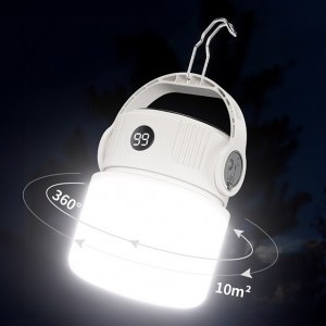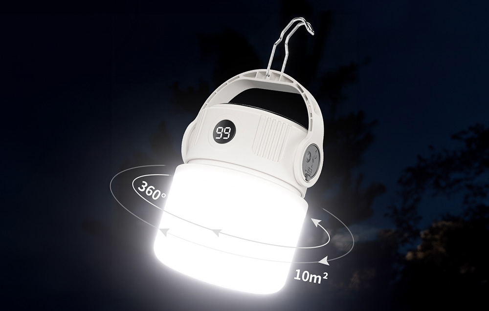 Praktikus fogantyú és fémhorog a teljes szabadságért: A lámpa stabil fogantyúval és fémhoroggal van ellátva, így bárhová felakaszthatja - sátorba, ágra, fészer alá vagy garázsba. Ez lehetővé teszi a lámpa magasabbra helyezését a jobb fényeloszlás és a szabadság érdekében, miközben különböző tevékenységeket végez.