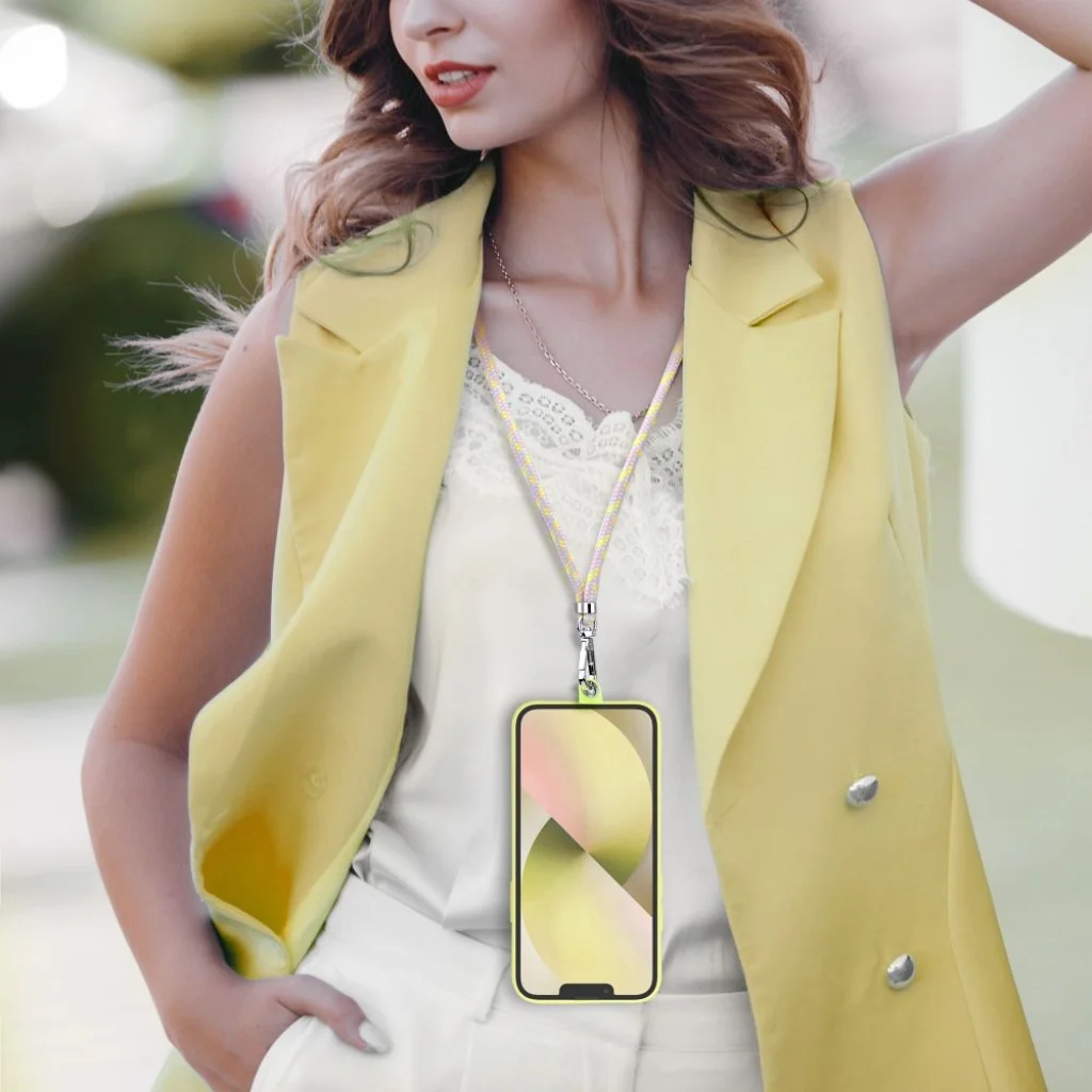 Telefon medál nagyon hosszú zsinórral. A széles állítási lehetőség lehetővé teszi, hogy sokféleképpen használja, például vállon vagy nyakon viselve. Válasszon a sokféle szín közül, hogy más kiegészítőkkel is passzoljon. A SWING (6mm) medál tökéletes kiegészítő a mindennapi tevékenységekhez. Kellemes tapintású dacronból készült, a zsinór hossza 165 cm (82,5 cm a hurokban) és elég tartós ahhoz, hogy hosszú ideig használható legyen. A hosszállítás lehetővé teszi a medál viselését különböző helyeken, például derékon, vállon vagy nyakon. Ennek köszönhetően a telefonja vagy a vezeték nélküli hangszórója mindig kéznél lesz. A medál biztonságos rögzítést tesz lehetővé okostelefonhoz a tokon keresztül. Csak be kell helyeznie a mellékelt kártyát a készülék és a tok közé, így a horog kiáll a töltőcsatlakozóból. Ily módon rögzítve a telefon erősen megmarad a zsinóron, így nem kell aggódnia a hirtelen elcsúszás vagy véletlen kioldás miatt. Specifikáció: Anyag: Dacron Zsinór hossza: 165 cm Zsinór hossza a hurokban: 82,5 cm Hossz állítás Horog a telefonhoz való rögzítéshez A medálok elérhetők öt színben: világos rózsaszín, világos zöld, szürke-sárga, fehér-lila és fekete.