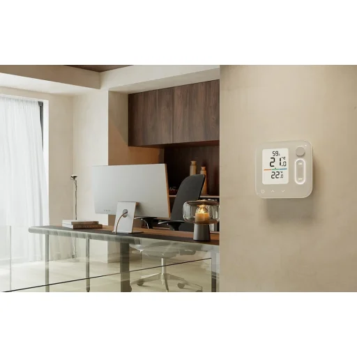 A hőmérséklet és a páratartalom pontos mérése A beépített nagy pontosságú hőmérséklet-érzékelő (±0,2°C) lehetővé teszi a fűtés pontos és stabil szabályozását. A panel folyamatosan méri a helyiség hőmérsékletét és páratartalmát, és az eredményeket áttekinthető grafikonok formájában jeleníti meg a kijelzőn. Így könnyen láthatóvá válik, hogy mikor a legjobb bekapcsolni vagy kikapcsolni a fűtést, ami alacsonyabb energiafogyasztást és alacsonyabb számlákat eredményez. A készülékek automatikus működését is beállíthatja - például amikor a hőmérséklet egy bizonyos küszöbérték alá csökken, a fűtés automatikusan bekapcsol.