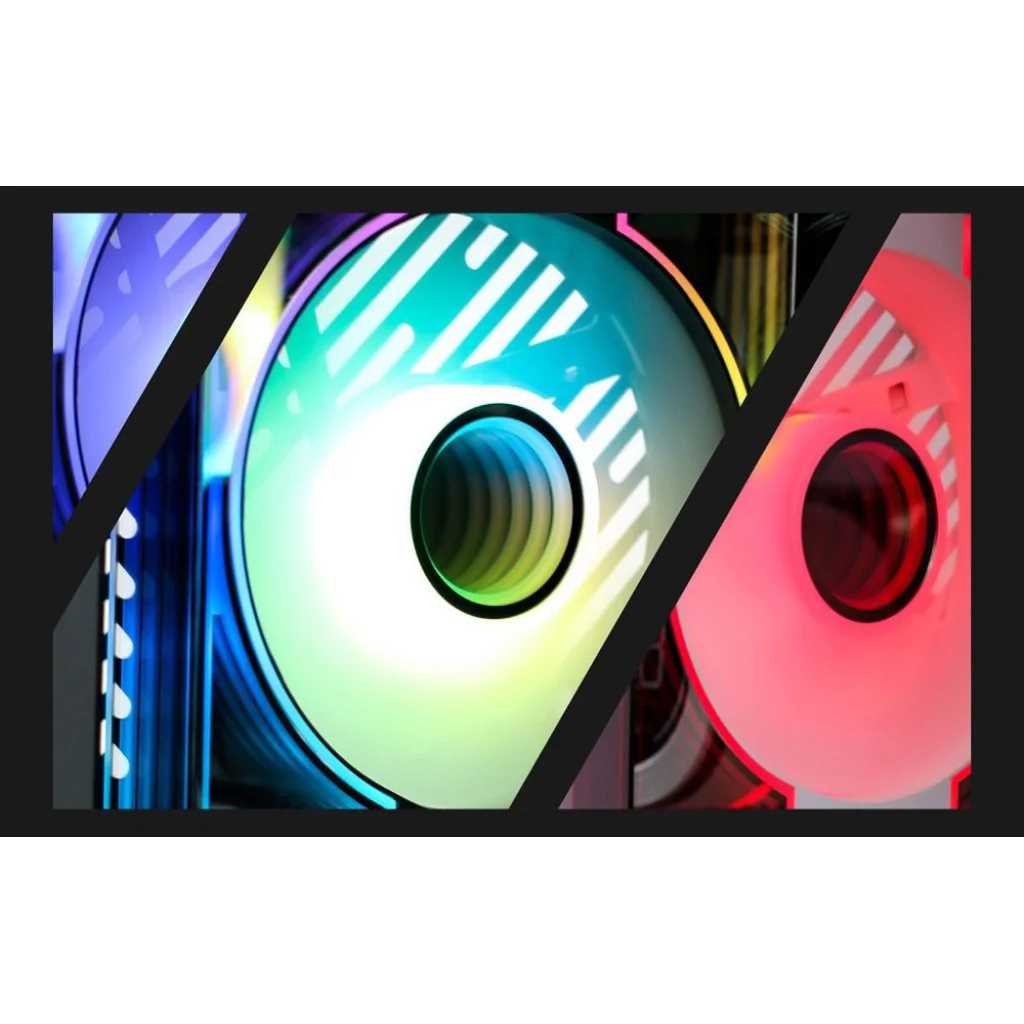 Dinamikus ARGB világítás: A DM8 címezhető ARGB világítást kínál, ami kompatibilis az olyan népszerű szinkronizálási rendszerekkel, mint az ASUS Aura Sync, az MSI Mystic Light, a Gigabyte RGB Fusion és az ASRock Polychrome RGB. 16,8 millió szín és számos dinamikus világítási effekt közül választhatsz, hogy a készletednek egyedi jelleget adj. A világítás a lapátokon és a ventilátor oldalán is eloszlik, teljes 360°-os hatást érve el.