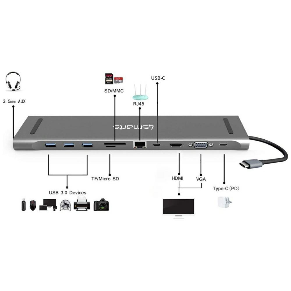 - 11 az 1-ben funkcionalitás: Minden szükséges port egyetlen helyen a maximális csatlakoztathatóságért.