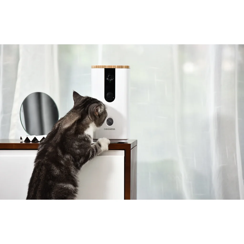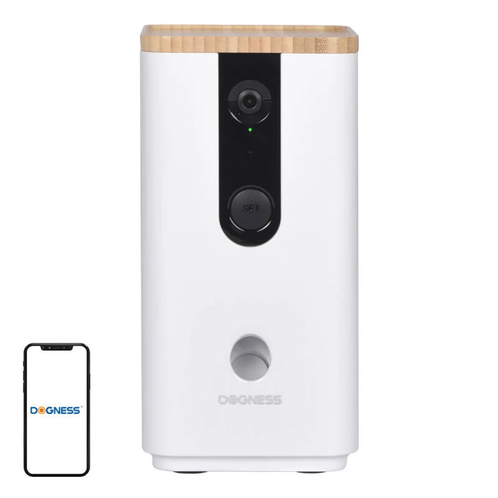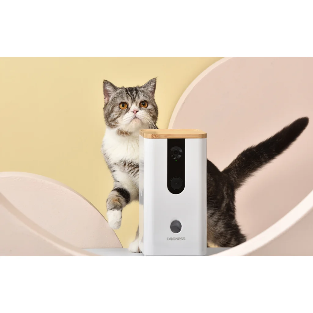 A T03 Dogness okos snack adagoló kamerával lehetővé teszi, hogy távolról irányítsd és kapcsolatba lépj kisállatoddal. Az ingyenes Dogness alkalmazással nézheted, hallhatod és beszélhetsz kedvencedhez, valamint bármikor jutalmazhatod őt snackkel, függetlenül attól, hol vagy. Az eszköz HD kamerával van felszerelve, amely éjszakai látással rendelkezik, lehetővé téve kisállatod mozgásának követését akár a sötétben is.