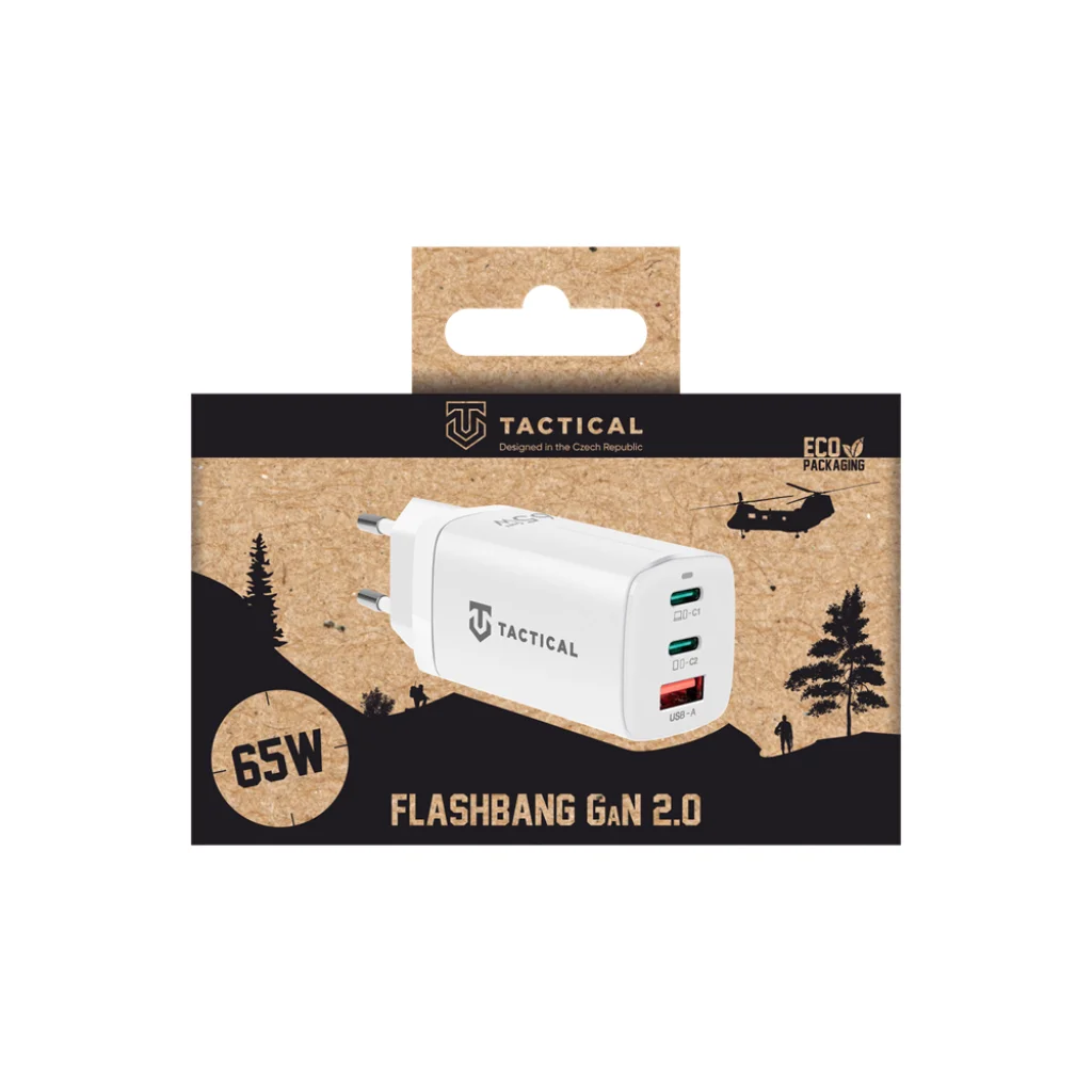 Utazási tűzerő. A Tactical FlashBang 2.0 65W az élvonalbeli GaN technológiával működik, komoly teljesítményt csomagolva egy olyan testbe, amely bármilyen aljzatba illeszkedik.