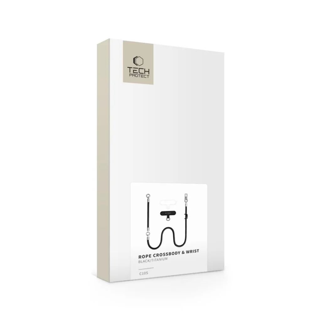 A Tech-Protect C10S Rope egy két részből álló pántszett, amely fonott zsinórból készült: egy hosszú crossbody nyakpántból, amely vállon át viselhető, valamint egy rövid csuklópántból. A két pánt egymáshoz is csatlakoztatható, így egy hosszabb, összesen 145 cm-es pánt hozható létre. A fém elemek és a zsinór visszafogott színe esztétikus, minimalista megjelenést kölcsönöz a szettnek.