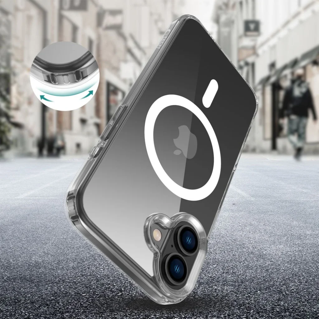 A Tech-Protect klasszikus, egy darabból álló, átlátszó kivitelű Flexair Hybrid Magsafe tokja, amelyet az iPhone vonalainak és eredeti formájának kihangsúlyozására terveztek. A hibrid konstrukció merev polikarbonát hátlapot és tartós, rugalmas keretet ötvöz. Az egész szerkezet kiváló védelmet nyújt a karcolások és sérülések ellen, miközben megőrzi a vékony és könnyű kialakítást.