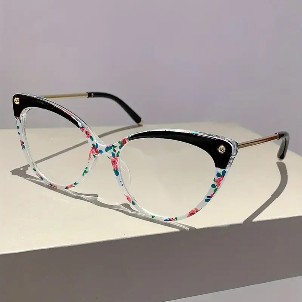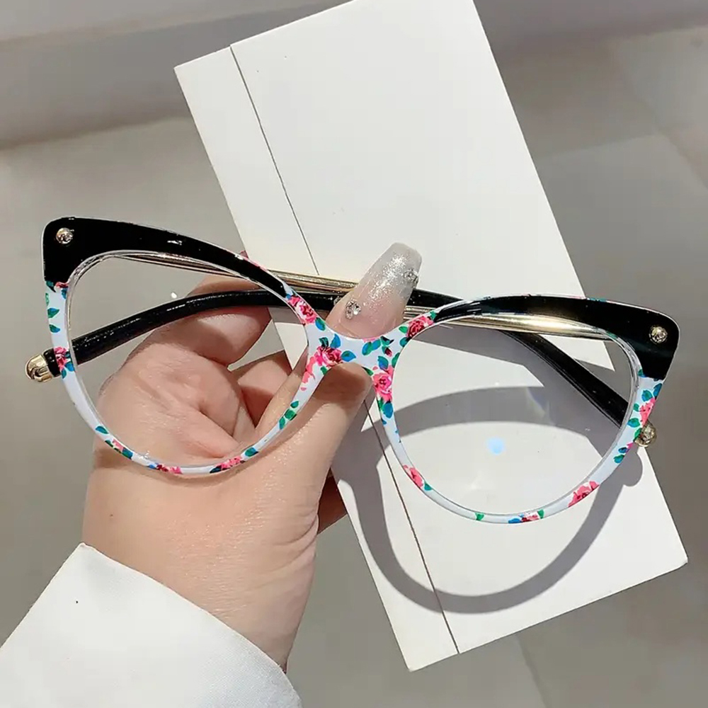 Techsuit Anti-Blue Light Szemüveg Reflex TR90 (F93308) - Macskaszem - Fekete/Virágmintás