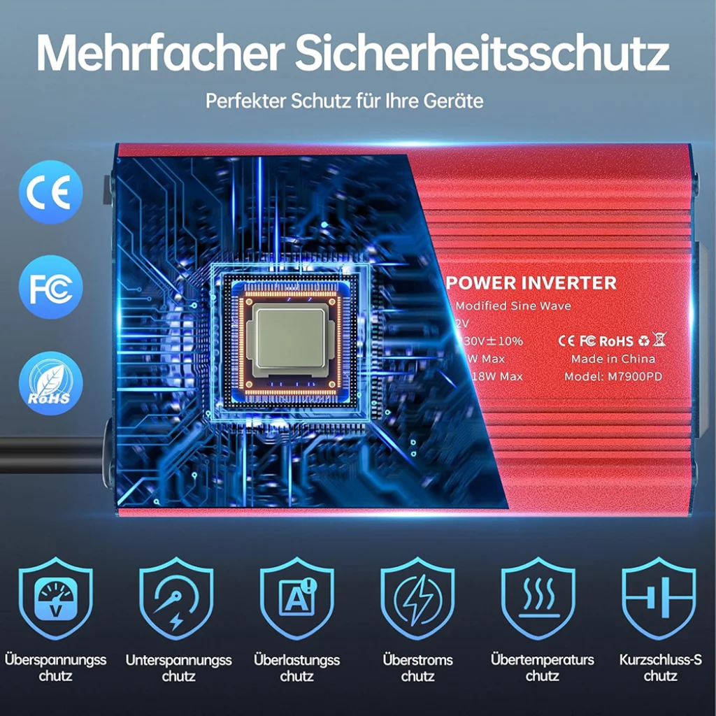 - Túlterhelés-védelem: Biztosítja, hogy az inverter ne károsodjon, ha a csatlakoztatott eszközök túllépik a maximális teljesítményt.
