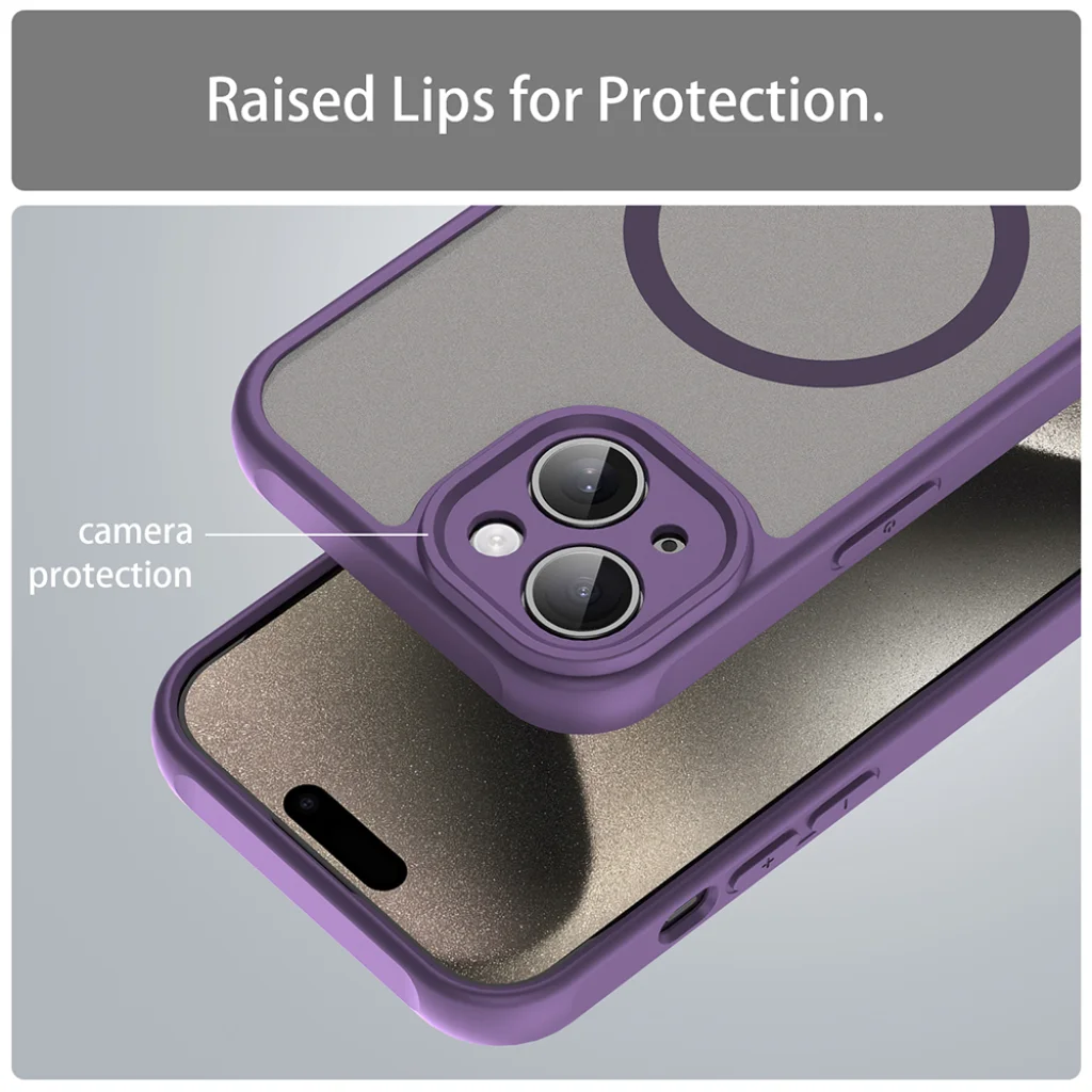 A lila keret és kameraszegély egyedi és elegáns megjelenést kölcsönöz az iPhone 15-nek, kiemelve annak dizájnját, miközben az áttetsző matt hátlap diszkréten engedi át a telefon eredeti színét. Tökéletes választás azoknak, akik a védelmet a stílussal ötvöznék.