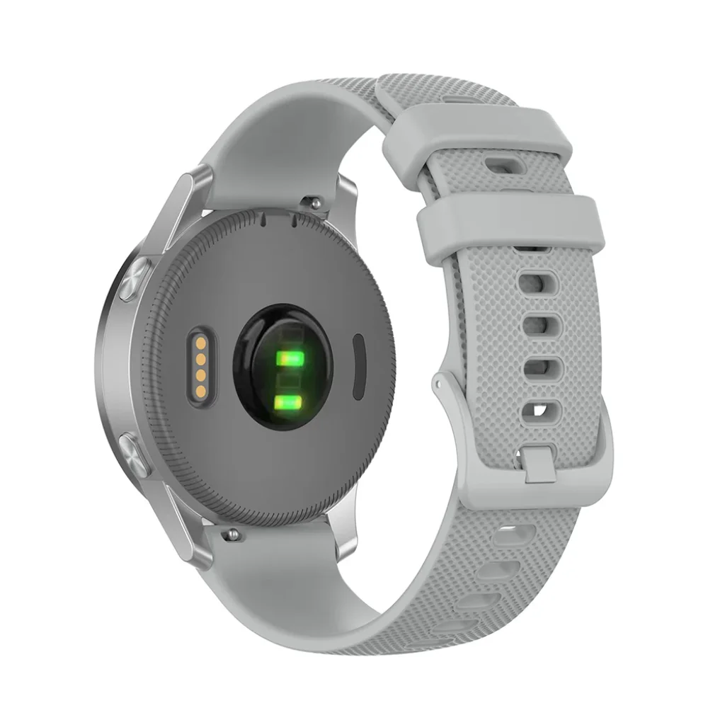 A szíj kiváló minőségű, puha és rendkívül rugalmas szilikon anyagból készült, amely kivételes kényelmet biztosít a nap 24 órájában. A felületén található finom, texturált mintázat nemcsak egyedi és sportos megjelenést kölcsönöz, hanem javítja a szellőzést, megakadályozva a bőr irritációját izzadás esetén. A klasszikus, tartós csat garantálja a biztonságos illeszkedést minden csuklóméretre, míg az elegáns szürke szín időtálló és sokoldalú, könnyen illeszkedik bármilyen ruhatárhoz.