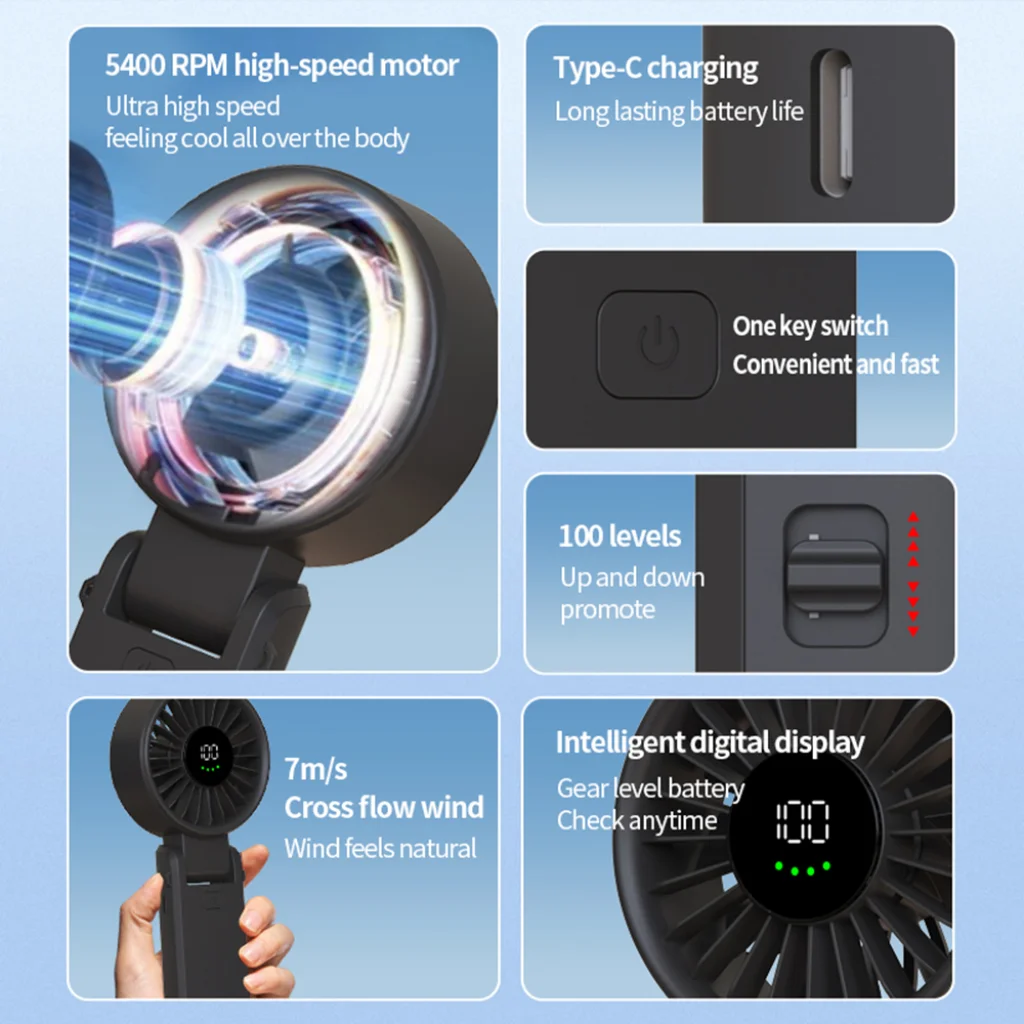 - Többfunkciós, Összecsukható Kialakítás: A Techsuit A10 rendkívül sokoldalú. Használhatja kényelmesen kézi ventilátorként, vagy egyszerűen összecsukhatja, és asztali ventilátorrá alakíthatja (akár 30 fokos szögben), így felszabadítva kezeit. Az innovatív 90 fokos nyakrész lehetővé teszi, hogy akár felakassza is, a tökéletes légáramlás érdekében.