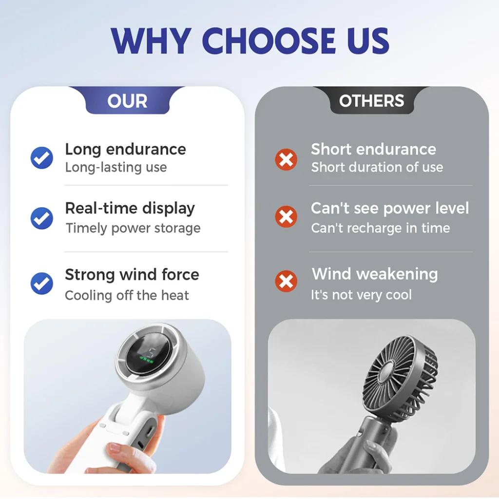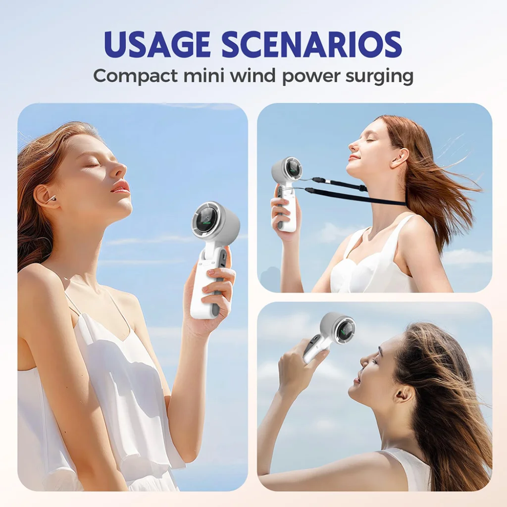 Termék leírás Techsuit - Prémium Mini Kézi Ventilátor (A9) - LED Digitális Kijelzővel, USB-C Újratölthető, 5 Szélsebesség, 5000mAh - Fekete