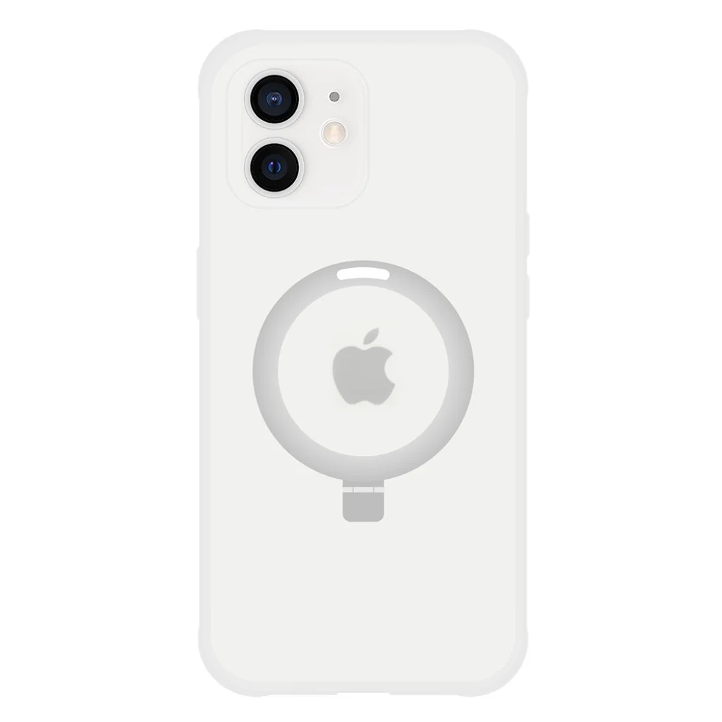 Tel Protect Mágikus MagSafe Állvány Tok - egy félig átlátszó matt tok, beépített összecsukható állvánnyal. A tok védi az okostelefon hátulját, oldalait és kijelzőjét. A tokba épített mágnesek kompatibilissé teszik az Apple MagSafe kiegészítőkkel.