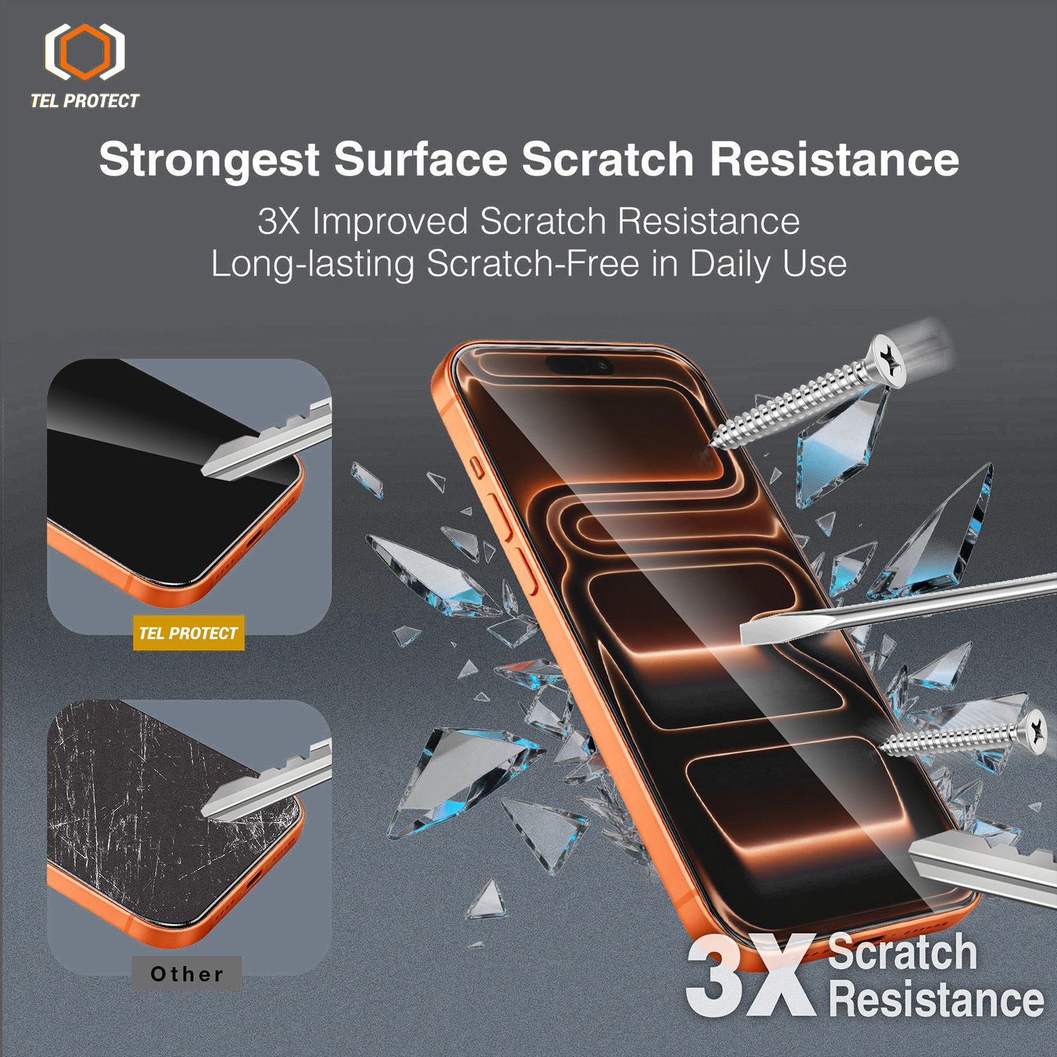 Tel Protect 10X HD DLC Diamond Coating – a következő generációs prémium edzett üveg DLC (gyémántszerű szén) technológiával és zafírbevonatú felülettel, amely 7-es Mohs-keménységgel rendelkezik, kiváló tartósságot és kristálytiszta kijelzővédelmet biztosít.