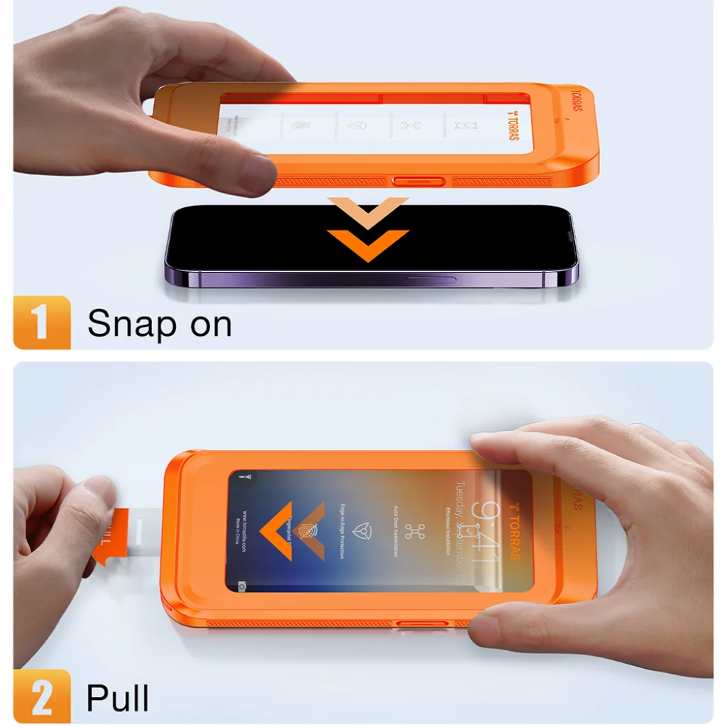Felejtse el a bonyolult felhelyezést és a bosszantó buborékokat! Az innovatív EZ-II telepítési keretnek köszönhetően az üvegfólia felhelyezése sosem volt még ilyen egyszerű, gyors és pontos. Csak kövesse a két egyszerű lépést: