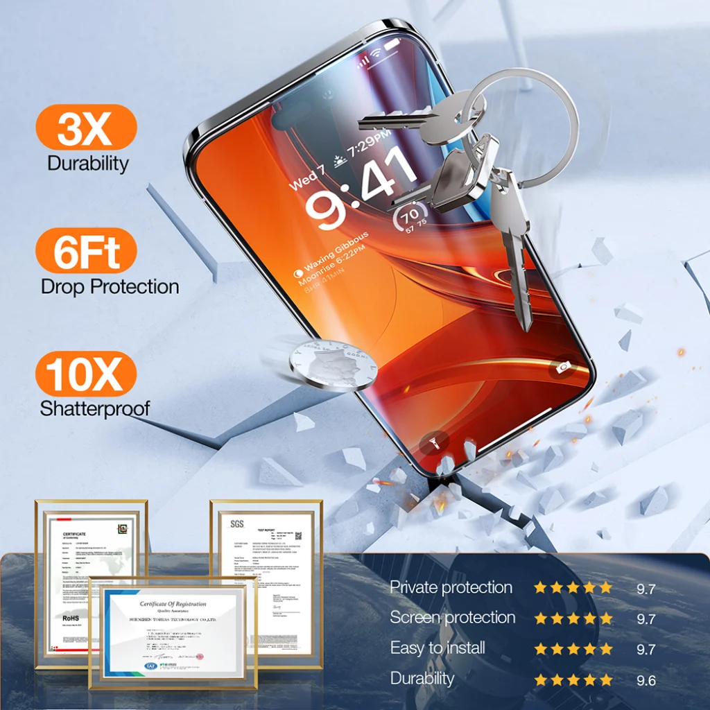 - 3x tartósabb az átlagos üvegfóliáknál, ellenállva a mindennapi igénybevételnek.