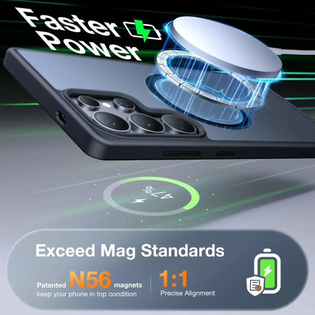 - Erős N56 mágnesek: A szabadalmaztatott N56 mágnesek garantálják a tökéletes 1:1 arányú illeszkedést MagSafe kiegészítőivel, biztosítva a stabil és gyors vezeték nélküli töltést, valamint az optimális tartást. Ezek a mágnesek meghaladják a szokásos mágneses szabványokat, hogy telefonja mindig a legjobb állapotban maradjon.