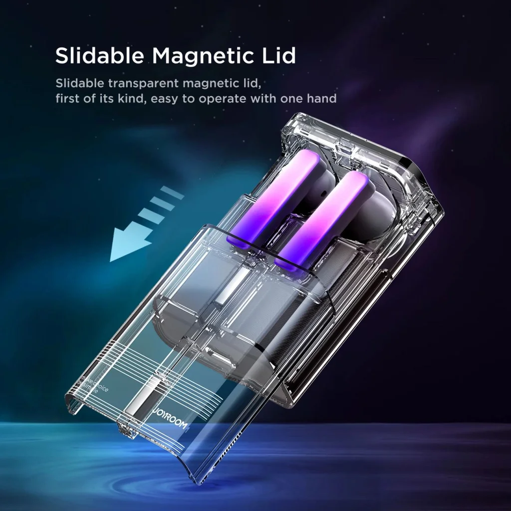 TWS Joyroom JR-TC1 IceLens Series vezeték nélküli fülhallgató LED világítással - fekete A TWS Joyroom JR-TC1 IceLens Series vezeték nélküli fülhallgatók modern audiotechnológiát és lenyűgöző dizájnt ötvöznek! Ha szereted az egyedi stílust - ez a választás a számodra. Az előrehaladott Bluetooth 5.3 technológiának köszönhetően stabil és gyors kapcsolatot biztosítanak. A biofiber membránnal ellátott hangszórók tiszta és erőteljes hangzást garantálnak. A csúszó kialakítású, átlátszó ház megkönnyíti a használatot, és az intuitív hangvezérlés minden használatot igazi élvezetté tesz. A Joyroom JR-TC1 fülhallgatóval minden zenehallgatás különleges élménnyé válik. A Joyroom JR-TC1 IceLens Series fülhallgatók legfontosabb előnyei:- Felejthetetlen vizuális élményt nyújtanak. A fülhallgatók négy LED háttérvilágítási módnak köszönhetően egyedi megjelenést biztosítanak és kitűnnek a többiek közül.