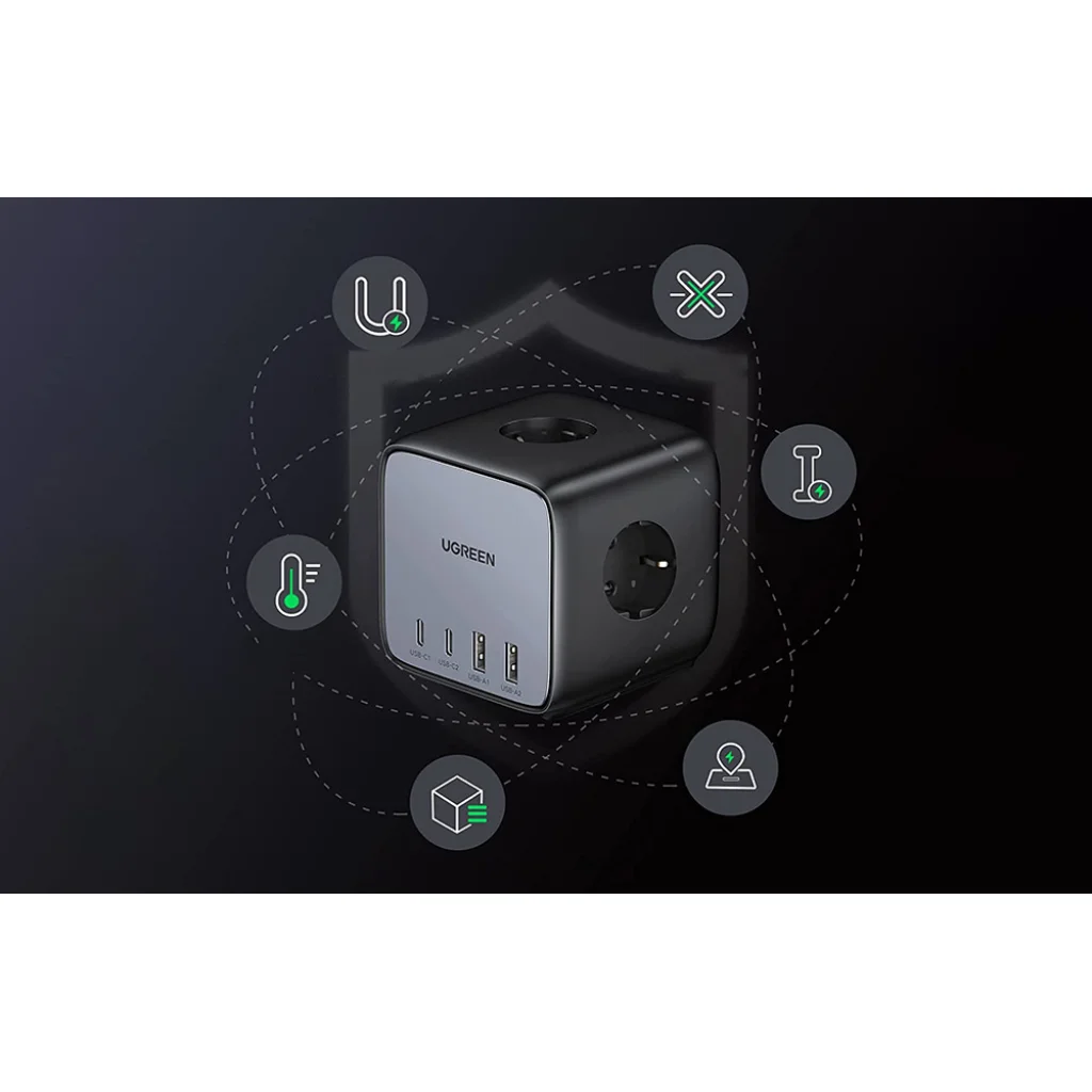 A biztonság nálunk elsődleges! A UGREEN CD268 számos védelmi funkcióval van ellátva, amelyek garantálják készülékeid és a hálózat védelmét. Védelem a túlfeszültség, túlmelegedés, rövidzárlat és túláram ellen. A ház kiváló minőségű, lángálló PC anyagból készült, amely tovább növeli a megbízhatóság szintjét. Nyugodtan töltheted értékes eszközeidet, tudva, hogy biztonságban vannak.