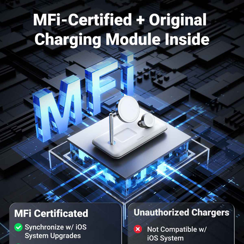 - 3 az 1-ben: vezeték nélküli töltés iPhone, Apple Watch és AirPods számára