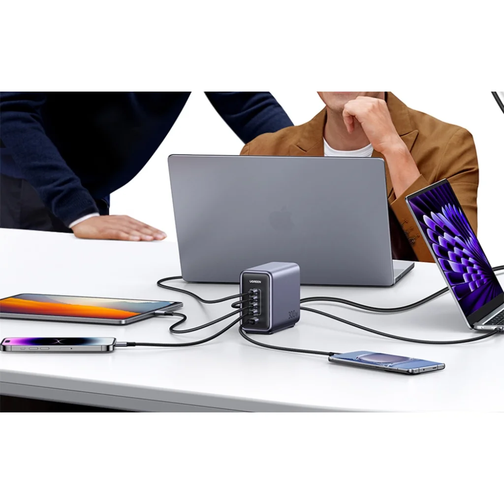 UGREEN CD333 Nexode, USB + 4x USB-C, GaN, 300W töltő + 240W USB-C kábel (fekete)